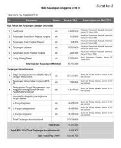 Berdasarkan data yang ada, total penghasilan (take-home pay) seorang anggota DPR mencapai puluhan juta rupiah setiap bulannya.