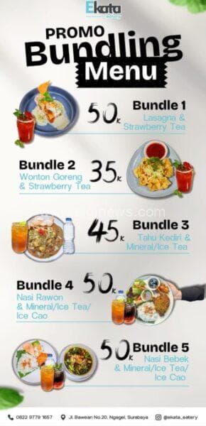 Jadi, tunggu apa lagi? Yuk datang ke Ekata Eatery Jalan Bawean No.20, Ngagel, Kec. Wonokromo, Surabaya, Jawa Timur.