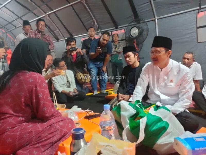 Mensos Gus Ipul berbincang-bincang dengan keluarga korban ambruknya mushola Al Khoziny, yang sampai Jumat (10/10/2025) masih belum teridentifikasi dan terus menunggu di tenda keluarga korban.