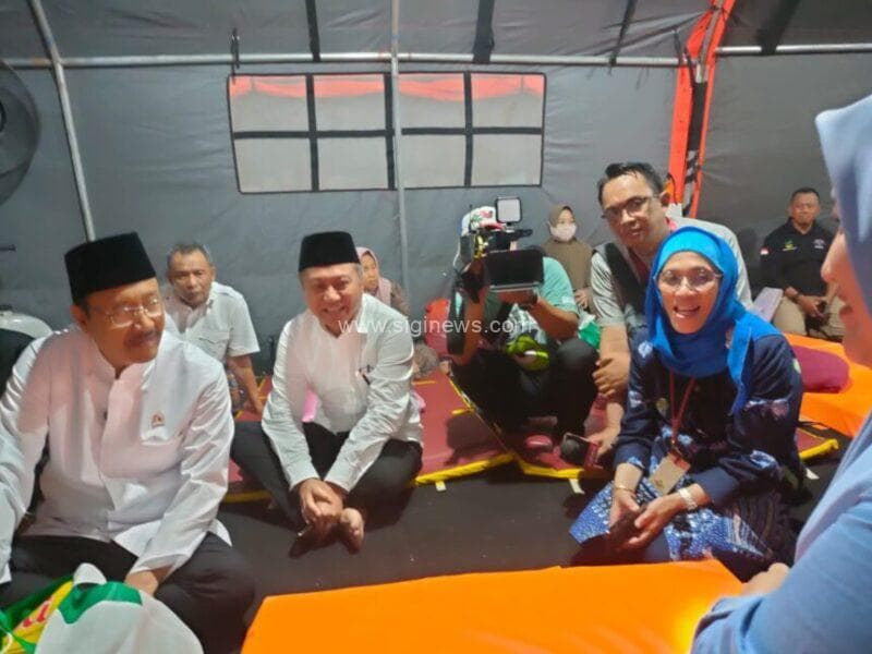 Mensos Gus Ipul mendatangi tenda penampungan untuk keluarga korban ambruknya Mushola Pondok Pesantren Al Khoziny, Sidoarjo, di area kantor Dinas Kesehatan Provinsi Jawa Timur.