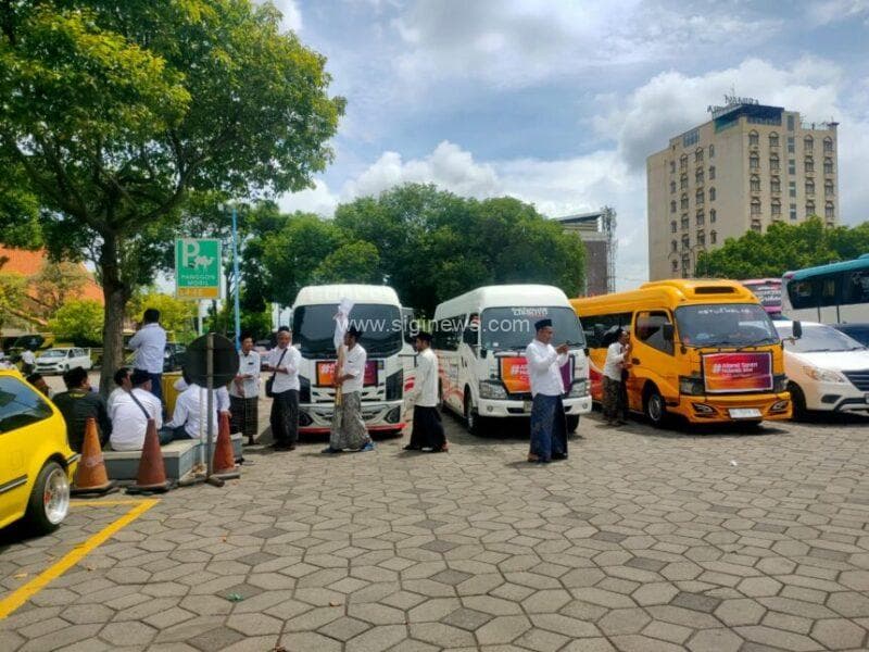 Para santri yang menggelar aksi demo Trans7 ini ke Surabaya menggunakan berbagai kendaraan transportasi seperti mobil Elf l, bus, maupun mobil pribadi.